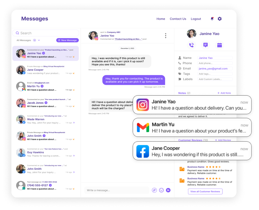 Bling is the perfect solution for your enterprise. Our platform allows you to manage phone calls, text messages, social media, and email all in one place.
